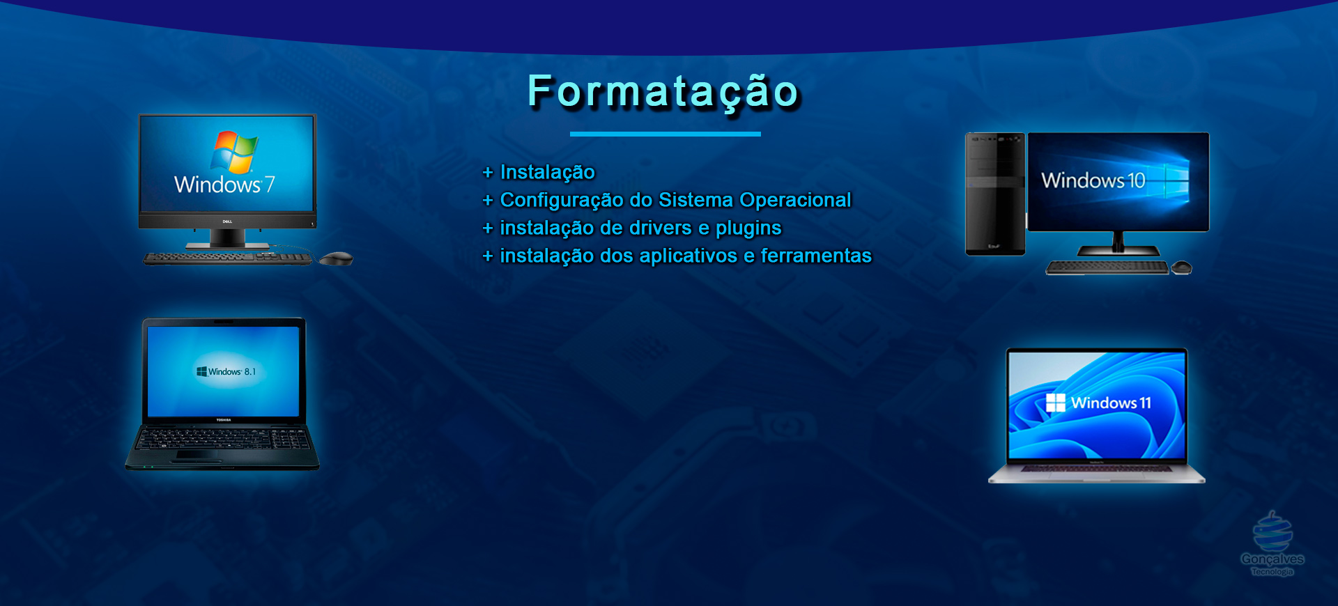 A Formatação de Computadores e Notebooks é realizada quando o Sistema Operacional está danificado, sem a possibilidade de recuperação.